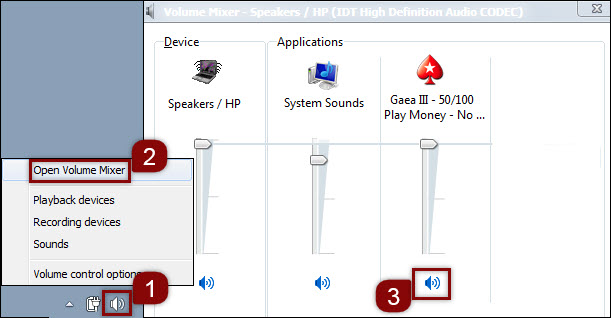 Verifique se o Windows Sound Mixer não está configurado para silenciar nosso software, seguindo esses passos:
