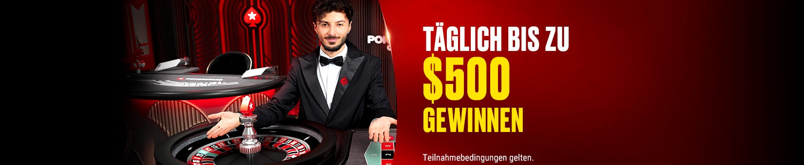Der Teilnehmerpool für jede tägliche PokerStars Live Casino-Ziehung setzt sich aus Kunden zusammen, die über die PokerStars .COM-, .EU-, .RO- und .UK-Plattformen teilnehmen.
