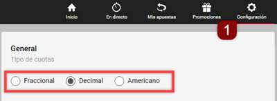 - Bajo "Apuesta con cuotas", elige tus preferidas.