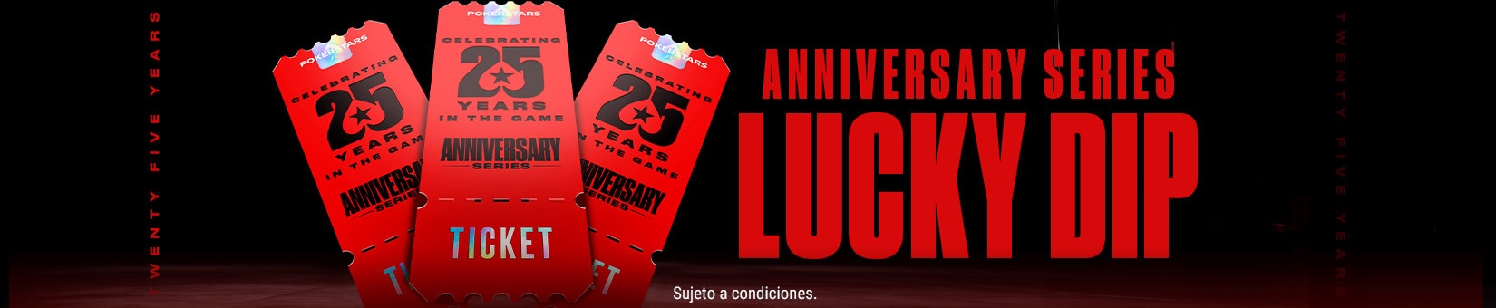 A los jugadores que participen en eventos de la Serie de Aniversario de PokerStars durante el período de la oferta, según se especifica a continuación, se les asignará un puntaje para la tabla de clasificación de forma aleatoria por cada evento que jueguen y así tendrán la oportunidad de ganar una parte de más de US$650.000 en tickets para la Serie de Aniversario de PokerStars.