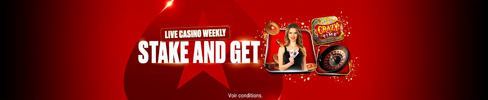Les joueurs doivent s'inscrire à l'offre sur la fenêtre Défis, puis accomplir un Défi Casino en misant au casino live (comme indiqué sur leur fenêtre Défis) avant la fin de la semaine d'offre concernée pour recevoir un bonus casino live instantané.