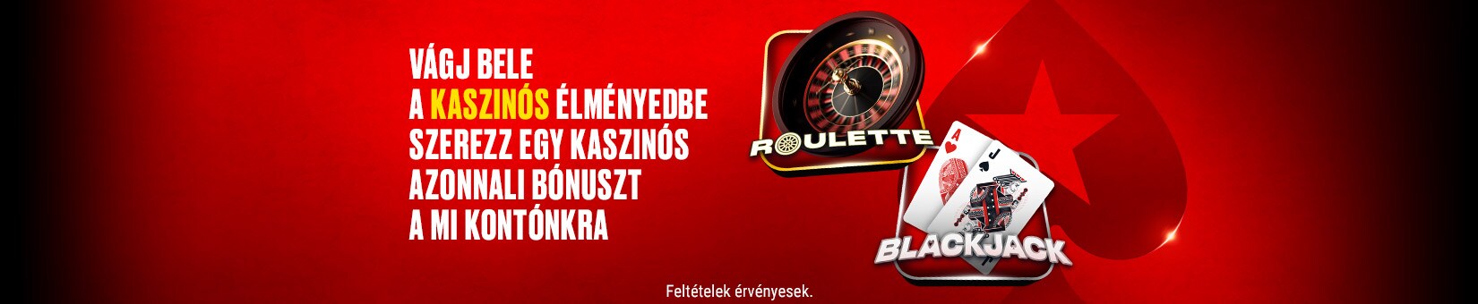 A kaszinós Azonnali Bónuszt a blackjack, a klasszikus blackjack, az élő Crazy Time, az élő Áll az Alku, az élő PokerStars Blackjack, a rulett, az élő Spin and Win Roulette és az élő rulett játékokban lehet felhasználni.