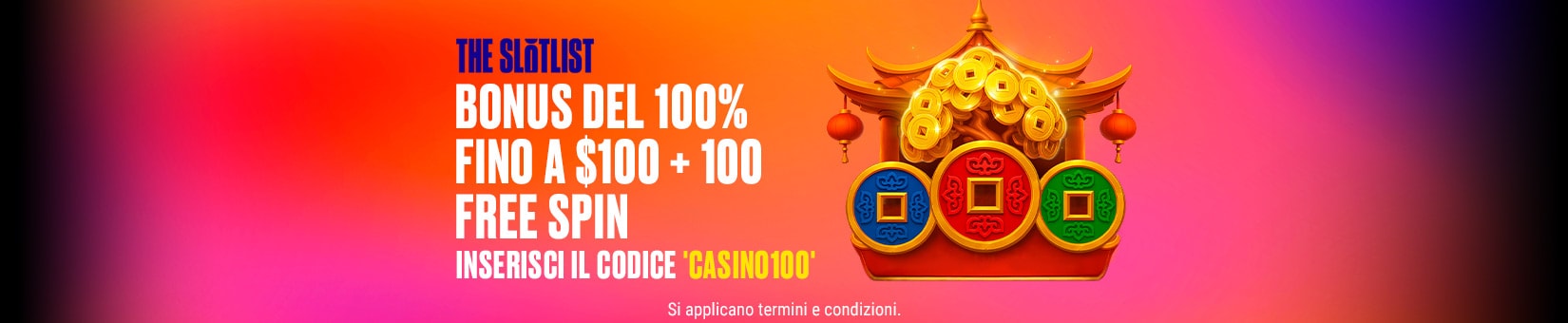 Per poter aderire a questa offerta, è necessario effettuare un deposito di almeno $10 inserendo il codice 'CASINO100'. Importo massimo per il deposito valido: $100.