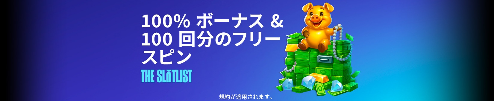 初回入金を行うと、最大 $100 のカジノ即時ボーナスが手に入ります。