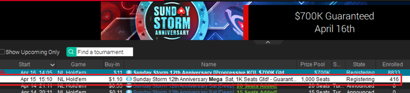 The $11 buy-in Sunday Storm on PokerStars is a staple of every poker player’s Sunday session – from the weekend warriors to the high-stakes crushers and those who only play one online poker tournament a week.
