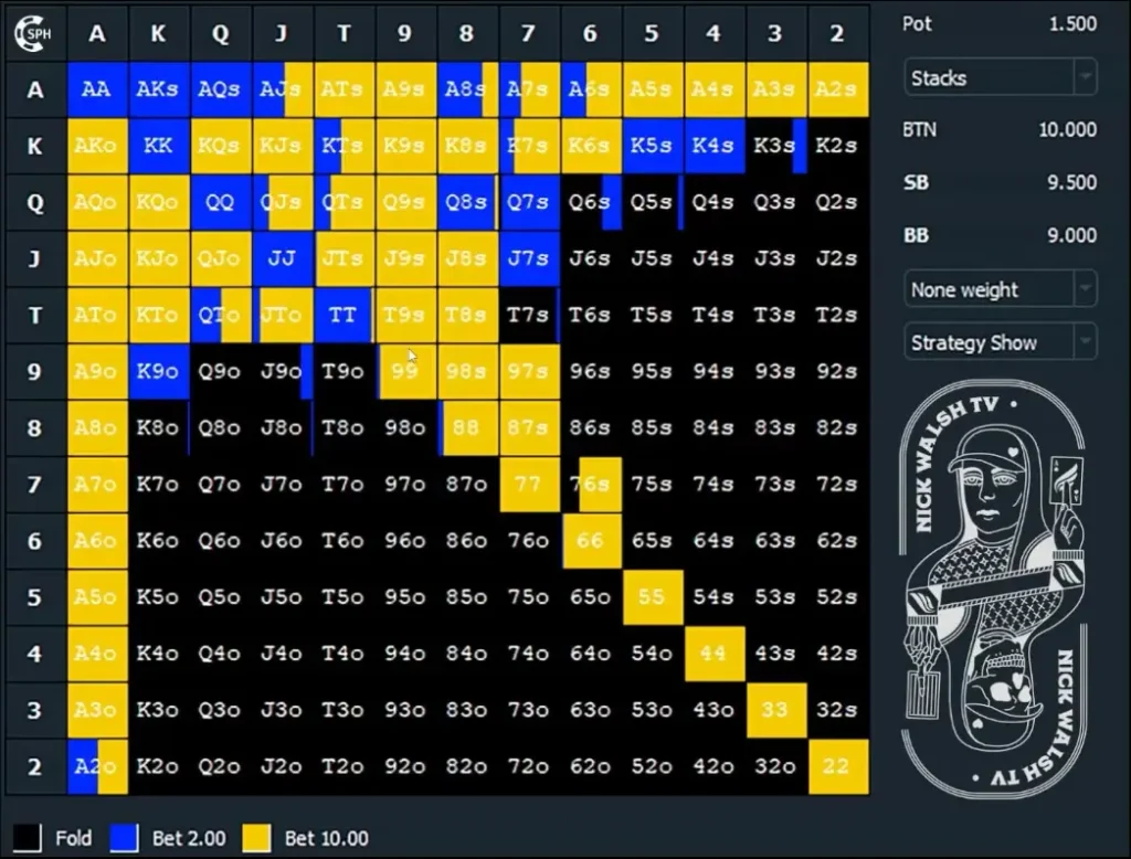 - Learn ranges for common stack sizes as a starting point, while also adapting to opponents.