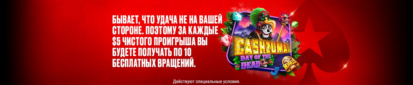 Играя в слот-игру Cashzuma Day of the Dead в указанный ниже период проведения акции, игроки могут получать по 10 бесплатных вращений за каждые проигранные $5.