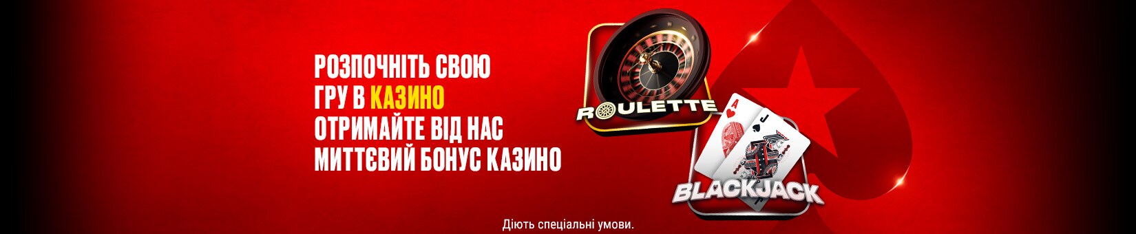 Миттєвим бонусом казино можна скористатися для гри у блекджек, класичний блекджек, живу гру Crazy Time, живу гру Deal or No Deal, живий блекджек PokerStars, рулетку, живу рулетку Spin and Win і живу рулетку.