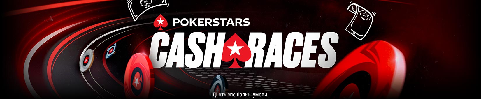 Завдяки кеш-гонкам PokerStars призи чекають на вас за кожним поворотом. Просто грайте у свої улюблені кеш-ігри, щоб скористатися шансом вигравати додаткові грошові призи.